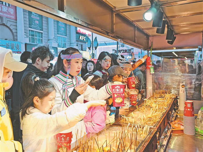 夜市上,除了品类丰富的特色小吃外,轻工类摊位同样人气旺盛。现场既有俄罗斯套娃、巧克力、精品咖啡等特色商品,也不乏创意十足的DIY手串饰品等手工艺品,吸引众多市民驻足选购,尽显夜市消费活力。据了解,今年黑河·爱辉国际大夜市在保留众多经典美食的基础上,又新增了25个美食摊位和10个轻工类摊位,营业时间是每天17时至22时。
