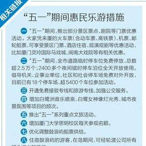 “五一”来厦门,遇见“暖心之城”。这个“五一”,厦门将推出五项“幸福开厦门”宠粉系列福利。一是礼券福利,预计发放600万元消费券;二是票根福利,市民游客凭演唱会、赛事门票以及火车票、机票、邮轮船票等票根,可享受部分景区、酒店等优惠;三是奶茶福利,联动“饿了么”推出“这杯我请”活动,连续5天共送出2.5万杯奶茶,为大家的厦门之行加点甜;四是酒店福利,酒店房间、自助餐、下午茶等福利持续送出;五是演出福利,计划赠送演出门票、VR体验券等。