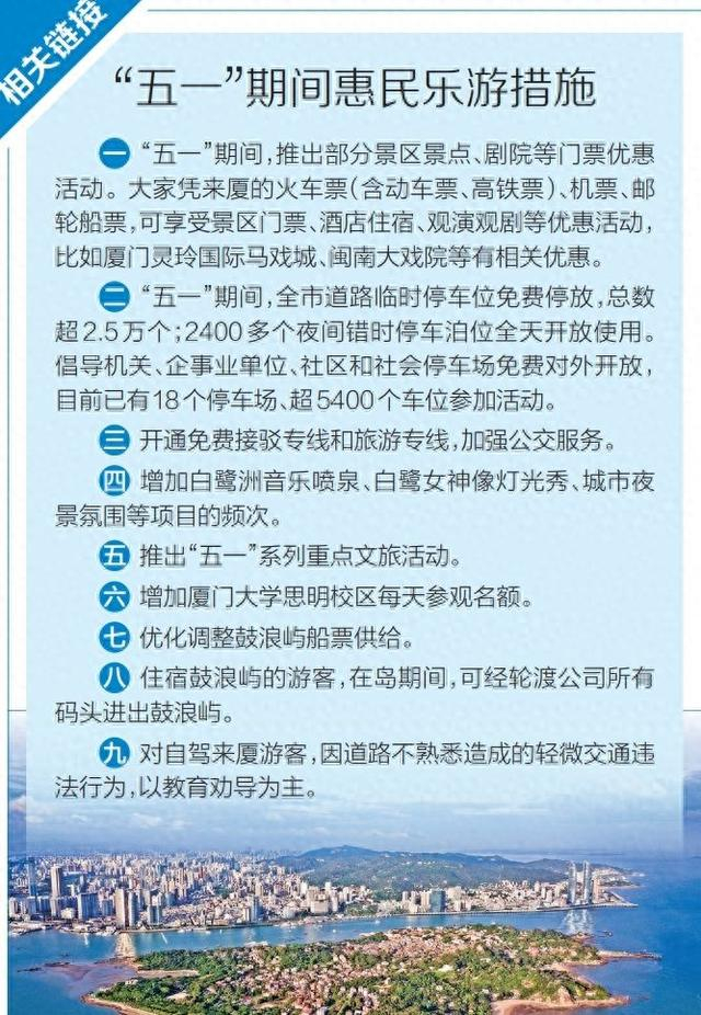 免费奶茶、免费演出票、免费停车……昨日,厦门市旅发办召开2025年“五一”期间文旅工作新闻发布会,发布“五一”重点旅游活动、惠民乐游措施以及一系列“宠粉”福利。