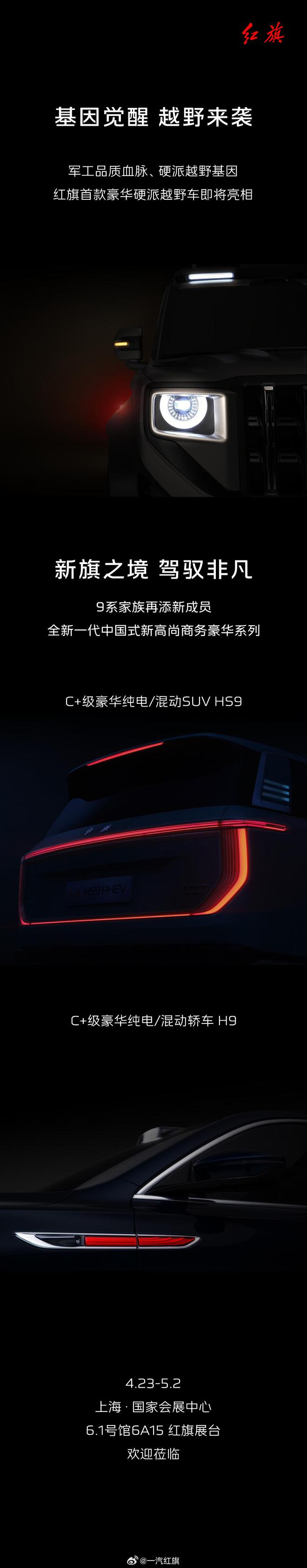 红旗公布上海车展阵容:C+级豪华SUV HS9/轿车H9,纯电混动都有