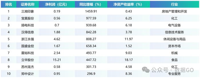 从净利润增幅来看,51家公司净利润增幅超50%,三湘印象、宝莫股份、扬电科技增幅居前,全年增幅分别为1459.91%、977.59%、939.68%。