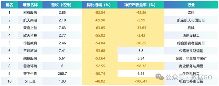 从营收降幅来看,当日披露年报公司中,9家公司营收降幅超50%,岩石股份、航天南湖、天宜上佳降幅居前,全年降幅分别为82.54%、69.98%、63.85%。