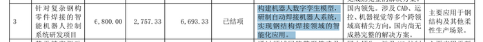 年报显示,柏楚电子在研项目共11项,其中一项名为针对复杂钢构零件焊接的智能机器人控制系统研发项目预计总投资规模6800万元,拟达到目标为构建机器人数字孪生模型,研制自动焊接机器人系统,实现钢结构焊接领域的智能化应用。