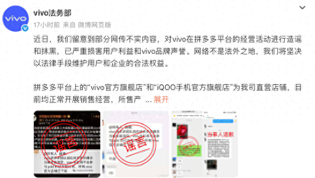 vivo法务部辟谣“贪腐致下架”传闻:拼多多官方旗舰店正常运营