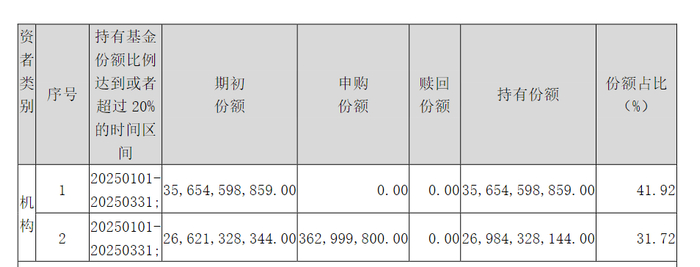 上述数字表明,“机构2”即为中央汇金资产管理有限责任公司。今年一季度,“机构2”增持该ETF 3.63亿份,如下图所示: