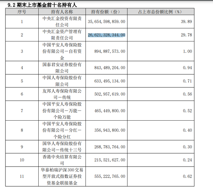 华泰柏瑞沪深300ETF发布的2025年一季报显示,今年初“机构2”持有该ETF 266.21亿份。根据该ETF的2024年年报,截至去年底,中央汇金资产管理有限责任公司持有该ETF266.21亿份。