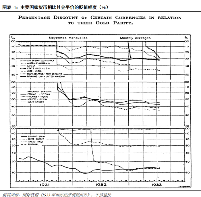 货币竞争性贬值与金本位制度的放弃,加剧了全球贸易体系的崩溃。