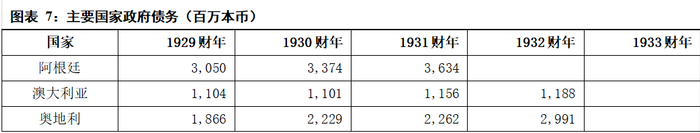 在萧条期间,除法国外,绝大多数国家的公共债务总额都有所增加,预算平衡困难加剧,在收入下降和部分支出难以大幅减少的时期,增加负债是不可避免的。从债务结构上看,拥有良好信用的财政稳健国家可以通过发行长期借款来弥补预算赤字,并为资本支出或特殊目的筹集资金。财政状况欠佳的政府则较难筹集长期债务,更多依赖举借短期债务,甚至求助于中央银行。