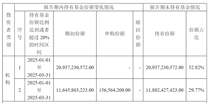上述数字表明,“机构2”即为中央汇金资产管理有限责任公司。今年一季度,“机构2”增持该ETF 3.63亿份,如下图所示: