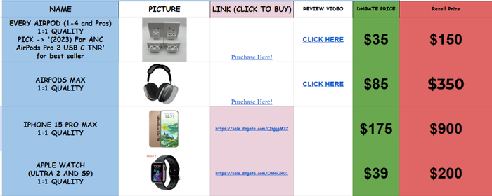 这份在Reddit论坛中传播比较广的公开文档,对比了不同产品在敦煌网(DHgate)买入后再卖出的收益。
