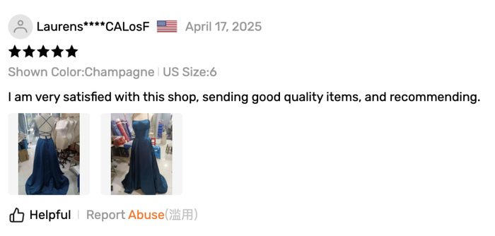 “我对这家店铺很满意,发的货质量很好,推荐给大家。”一位美国买家在敦煌网购买了一件晚礼服长裙后,给店铺打了五分好评。