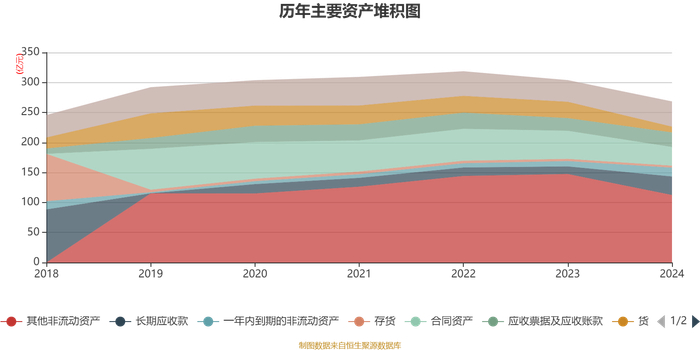资产重大变化方面,截至2024年末,公司长期应收款较上年末增加143.87%,占公司总资产比重上升7.3个百分点;其他非流动资产较上年末减少23.68%,占公司总资产比重下降6.6个百分点;货币资金较上年末减少64.39%,占公司总资产比重下降5.32个百分点;合同资产较上年末减少33.66%,占公司总资产比重下降3.84个百分点。