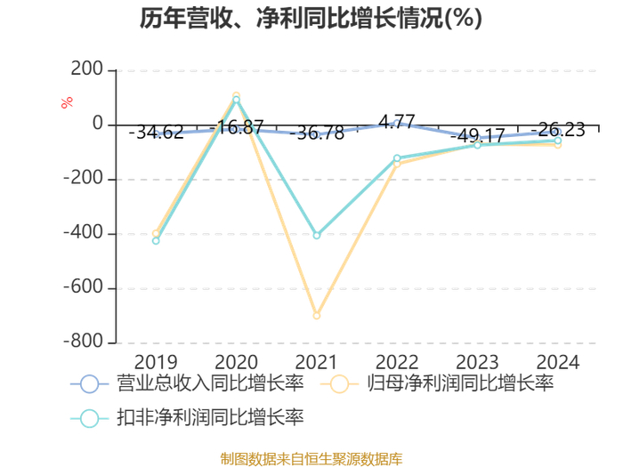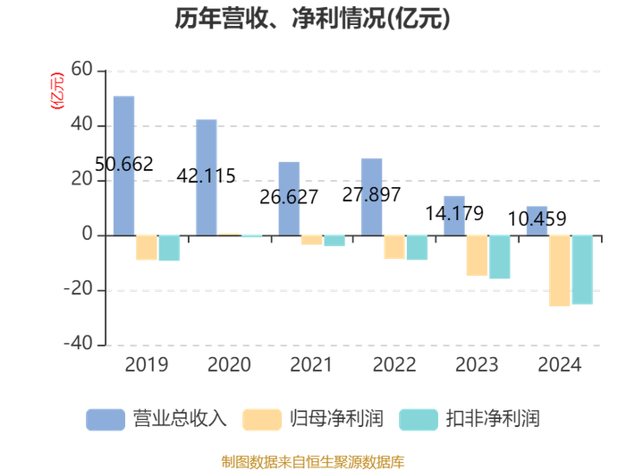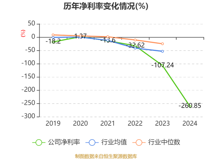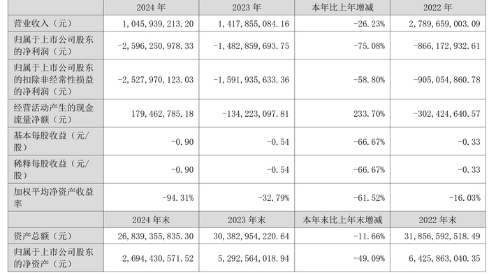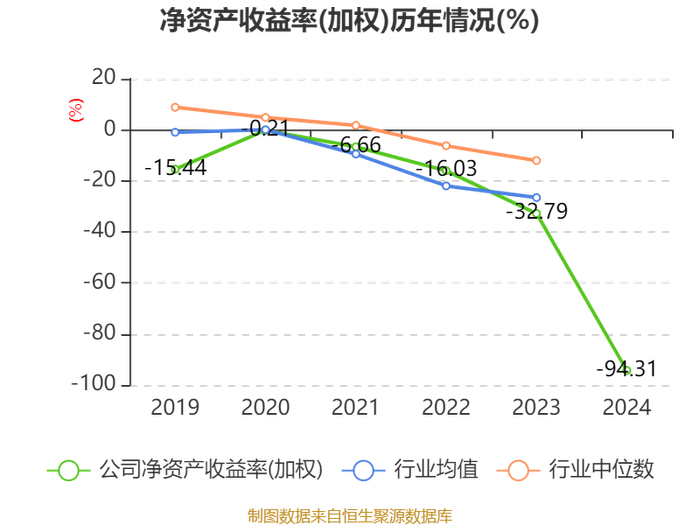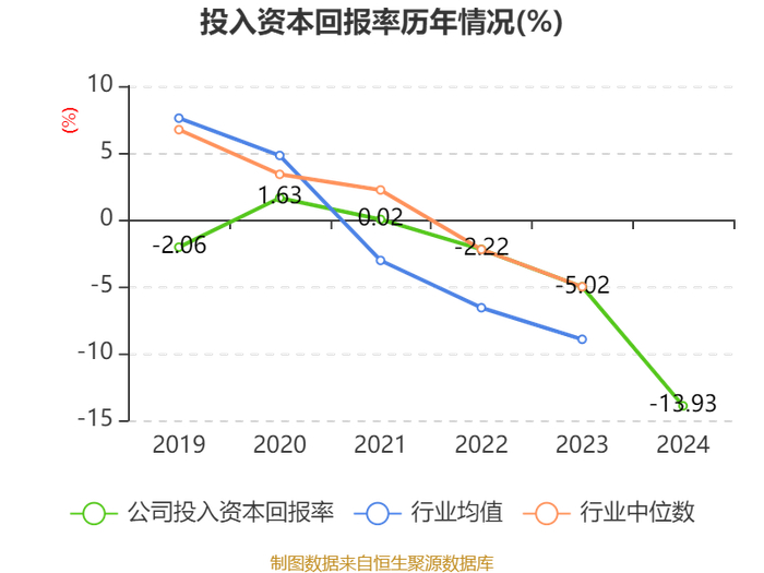 数据显示,2024年公司加权平均净资产收益率为-94.31%,较上年同期下降61.52个百分点。公司2024年投入资本回报率为-13.93%,较上年同期下降8.91个百分点。