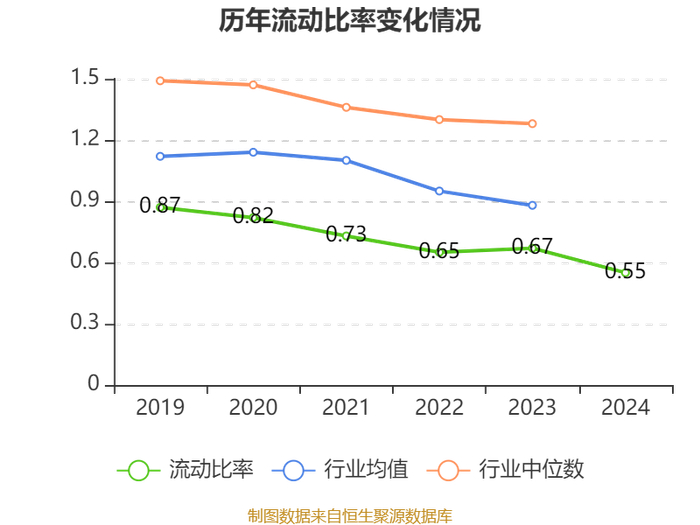2024年,公司流动比率为0.55,速动比率为0.53。