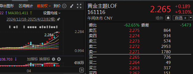 以易方达黄金主题证券投资基金(LOF)为例,易方达基金4月21日晚间公告称,2025年4月17日,该基金份额净值为1.332元,截至4月21日,该基金在二级市场的收盘价为2.076元。特此提示投资者关注二级市场交易价格溢价风险,投资者如果高溢价买入,可能面临重大损失。因此,该基金4月22日开市起至当日10:30停牌。