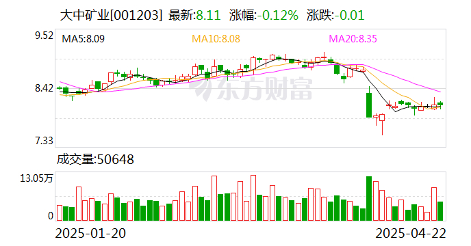 2024年铁矿石价格震荡下行,普氏铁矿石价格指数(62% 品位)全年均价为109.5 美元/吨,同比下降8.7%。但大中矿业通过成本控制保持了竞争力,业绩稳定。财务数据显示,2024年,公司实现营业收入38.43亿元,净利润7.51亿元。2025年一季度,营收和净利分别为9.25亿元和2.25亿元。