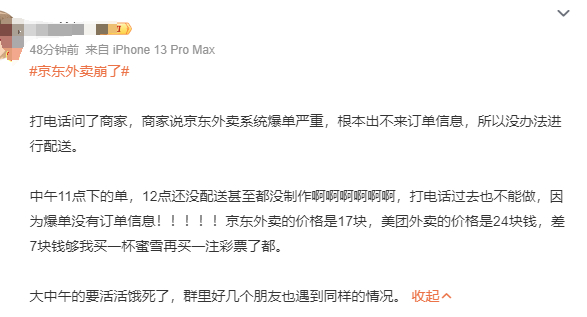 “京东外卖崩了”冲上热搜!打工人纷纷喊饿,客服最新回应