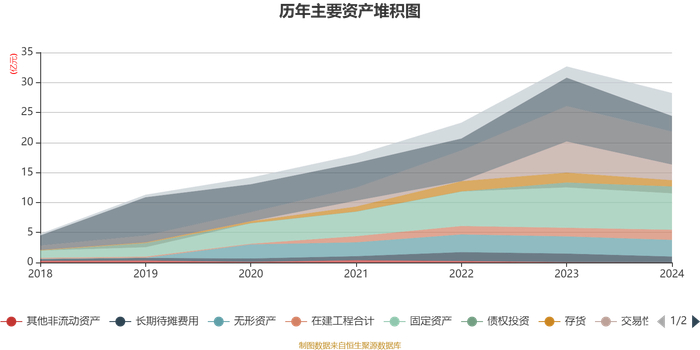资产重大变化方面,截至2024年末,公司交易性金融资产合计较上年末减少49.59%,占公司总资产比重下降6.62个百分点;货币资金较上年末减少44.79%,占公司总资产比重下降5.22个百分点;其他流动资产较上年末增加609.72%,占公司总资产比重上升4.3个百分点;在建工程合计较上年末增加18.55%,占公司总资产比重上升1.62个百分点。