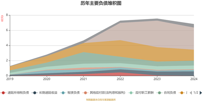 负债重大变化方面,截至2024年末,公司长期借款占公司总资产的0.74%,上年末为0;应付票据及应付账款较上年末减少24.04%,占公司总资产比重下降0.71个百分点;长期递延收益较上年末增加16.43%,占公司总资产比重上升0.52个百分点;合同负债较上年末增加3.83%,占公司总资产比重上升0.39个百分点。