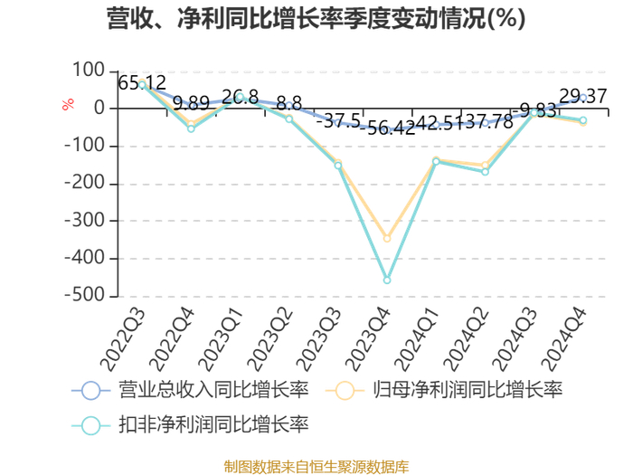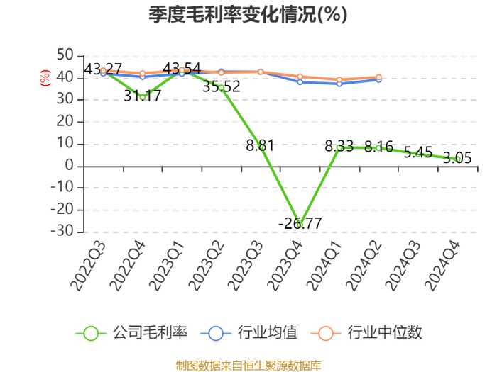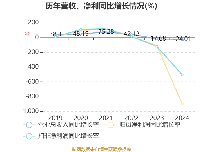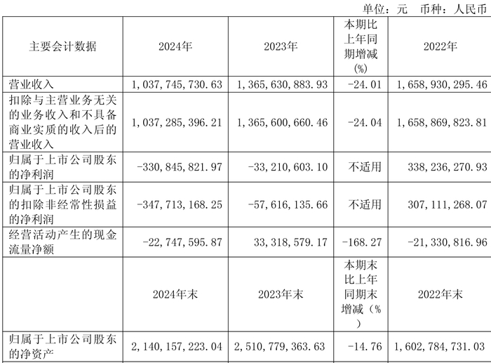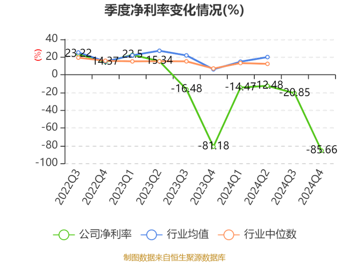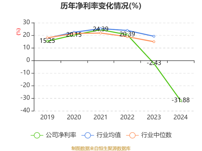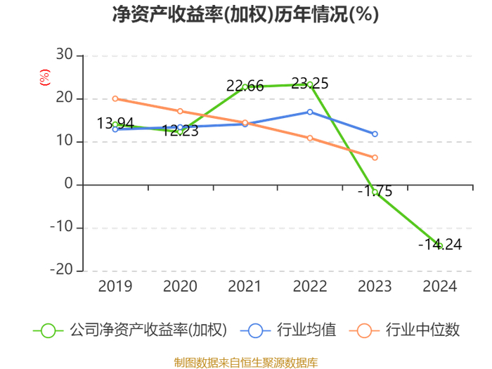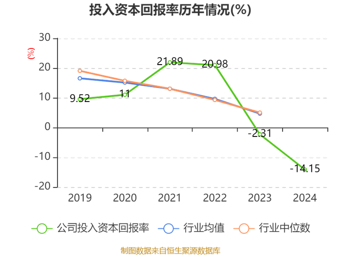 数据显示,2024年公司加权平均净资产收益率为-14.24%,较上年同期下降12.49个百分点。公司2024年投入资本回报率为-14.15%,较上年同期下降11.84个百分点。