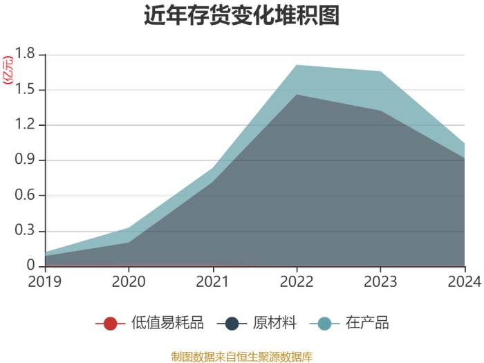从存货变动来看,截至2024年末,公司存货账面价值为1.04亿元,占净资产的4.88%,较上年末减少6115.71万元。其中,存货跌价准备为1066.88万元,计提比例为9.27%。