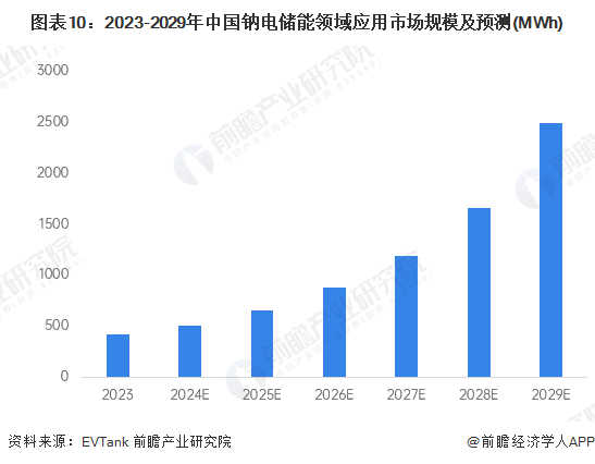 工信部提出,高性价比的钠离子电池有望成为锂离子电池的重要补充,尤其是在固定式储能领域将具有良好发展前景。综合来看,中短期内钠电储能规模有望快速增长。前瞻初步统计到2029年,中国钠电储能领域应用规模将接近2500MWh。