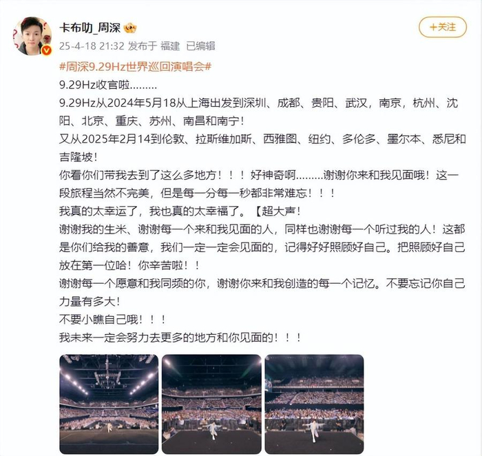 此次巡演是周深继“9.29Hz”世界巡演圆满收官后的全新力作。此前“9.29Hz”巡演覆盖国内外16个城市,海外站更创下中国歌手票房纪录,如拉斯维加斯站动员观众超1万人,票房达312万美元。