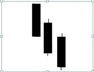 三只乌鸦是典型的下跌形态。遇到这种组合,应该及早出局。实际上,不管是不是三只乌鸦组合,只要在顶部连续出现了三根大阴线或者中阴线,都是一个较为可靠的看空信号。