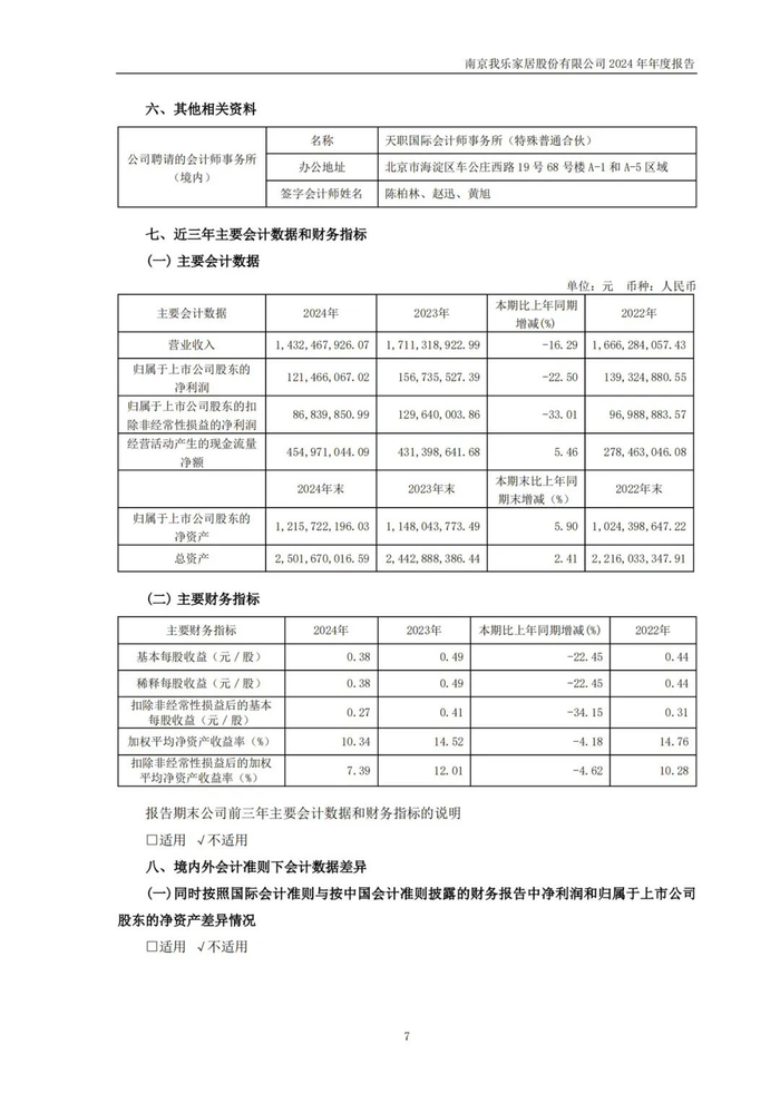 我乐家居2024年营收约14.32亿元,净利润约1.21亿元