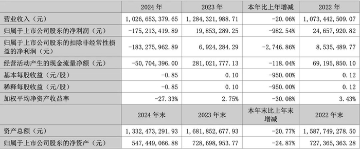 近日,广东顶固集创家居股份有限公司公布了2024年年度报告,报告显示,公司全年实现营业总收入10.27亿元,同比下降20.06%;归属于上市公司股东的净利润为-1.75亿元,同比大幅下降982.54%;扣除非经常性损益后的净利润为-1.83亿元,同比下降2746.86%。
