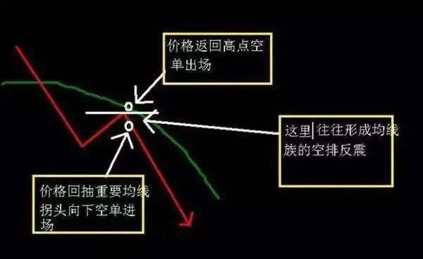 1).当价格反弹至重要均线遇到阻力开始勾头下跌的初期进场做空,当价格反身再次回到前期反弹头部或突破重要均线则果断出局观望。