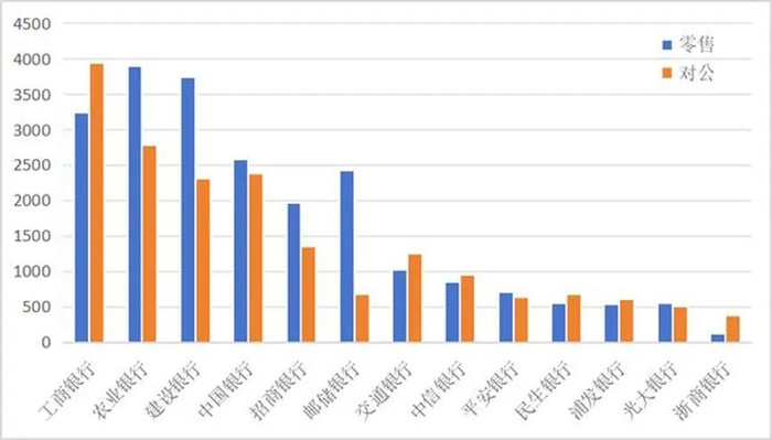 工行、交行、中信、民生、浦发、浙商等银行对公业务规模已反超零售业务;