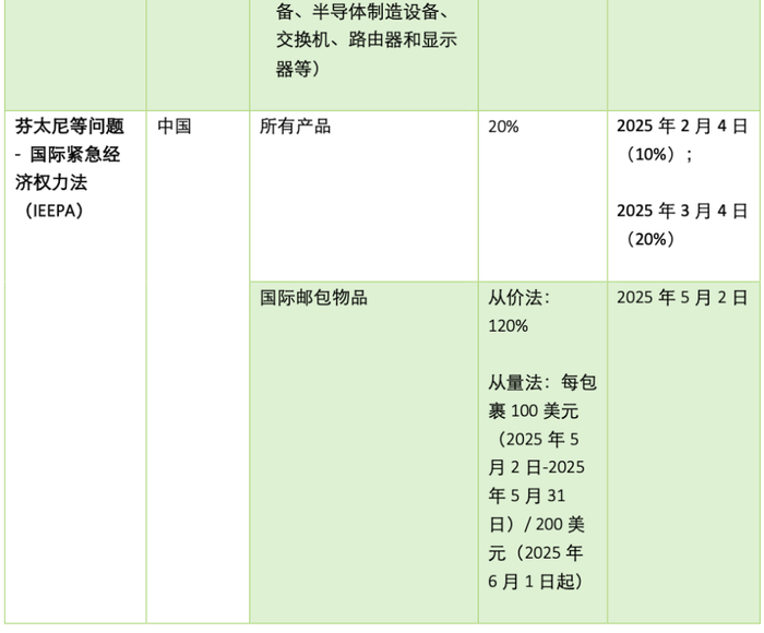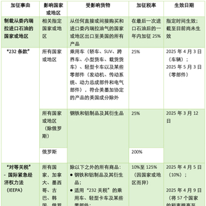 自2025年2月以来,美国政府已宣布并实施多轮加征关税措施,相关概要信息汇总如下表。