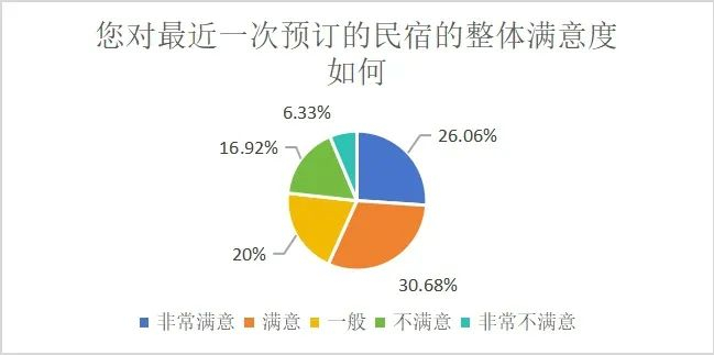 调查问卷结果显示,不到6成受访者对最近一次城市民宿体验满意,43.7%受访者在城市民宿消费过程中遇到卫生状况差等问题。对于问题解决速度和效果,受访者中仅6.97%表示问题解决迅速且有效,认为问题解决有改进空间、勉强接受、拖沓且无效和未得到任何解决的分别占26.2%、17.1%、16.2%和13.5%。