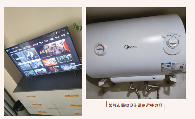 实地体验结果显示,56家城市民宿均配备了空调、热水器、电视、无线网络等设施设备,且运行情况总体较好;均在公共区域安装监控设备,且在正常运行状态。