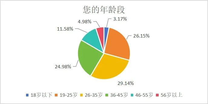 问卷调查结果显示,城市民宿核心用户年龄分布呈现年轻化与中青年主导的特点,1105位受访者中:19-25岁占比为26.15%;26-35岁占比为29.14%;36-45岁占比为24.98%,三者合计占比超80%。