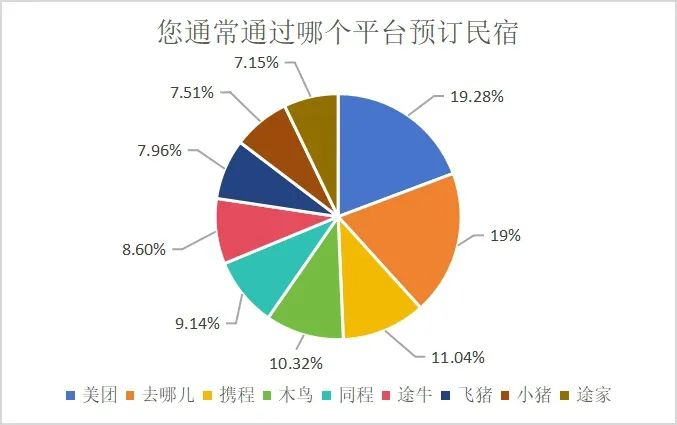 问卷调查结果显示,1105位受访者均主要通过在线平台预订城市民宿,对平台预订便利性较满意,占比为100%;且受访者预订城市民宿集中在知名度较高的9个平台。