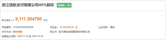 值得注意的是,在决定转让信航支付51%控股权后,航天通信对剩下的49%股权并不留恋。根据去年11月公开披露的信息,信航支付49%股权项目于2024年11月25日在广东联合产权交易中心挂牌,转让底价为5111.20万元,挂牌截止日期为2024年12月20日。