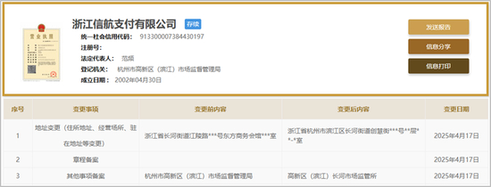 移动支付网4月22日消息,根据国家企业信用信息,跨境支付企业杭州乒乓智能技术有限公司(简称“PingPong”)关联支付机构浙江信航支付有限公司(简称“信航支付”)于近日发生地址变更(住所地址、经营场所、驻在地址等变更),从“江陵路”搬到了“创慧街”,变更后的地址就在PingPong于去年6月启用的总部大楼。同时发生变更的还有公司章程备案、其他事项备案(市场监督机构信息)等。