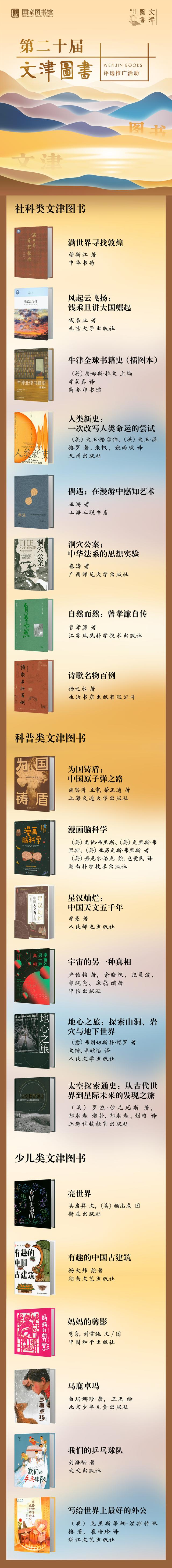 获第二十届文津图书奖的20种图书
