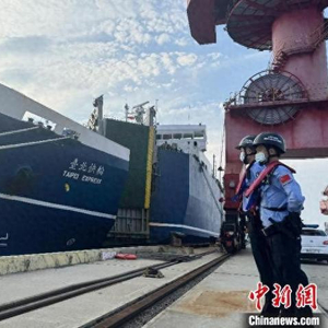 中新网平潭4月22日电 (白志斌)22日,平潭边检站快速为“台北快轮”办理出境手续,该船满载“海空联运”跨境电商出口包裹驶离平潭金井港,前往中国台湾台北港。