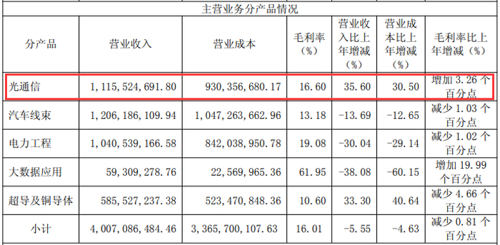报告期内,永鼎股份光通信业务以11.16亿元营收贡献了总营收的27.13%,同比增速达35.6%,毛利率提升3.26个百分点至16.60%。