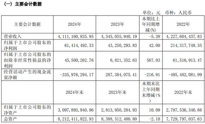 4月21日,永鼎股份交出的2024年财报,恰似一份“逆周期生存指南”——全年营收同比微降5.38%至41.11亿元,但归母净利润逆势上扬42%至6141.45万元。