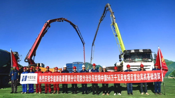 在内蒙,华能新能源蒙西分公司防沙治沙乌拉特中旗56万千瓦风电项目建设也按下快进键,目前首台风机基础浇筑已圆满完成。风机基础直径24米、深5.12米,使用钢筋90余吨,混凝土1000余方。