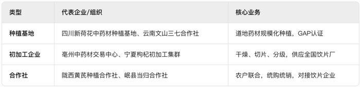 中药饮片产业链可拆解为:上游是中药材种植与初加工。中游是中药饮片生产加工。下游是销售与终端使用,包括医疗机构、药店、中成药厂、出口贸易商等。
