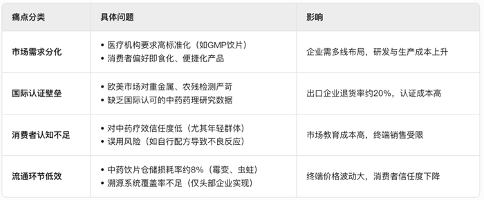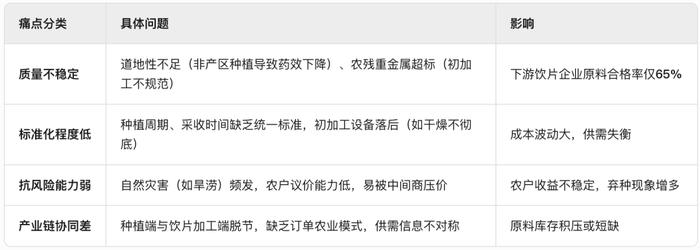技术壁垒低:依赖传统经验,技术含量低(如采收时间、干燥工艺),科技投入不足,GAP(规范化种植)普及率仅40%。