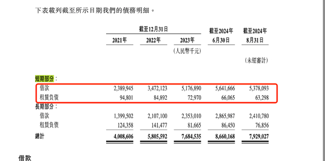 曹操出行的短期偿债压力也比较大。截至2024年8月31日,该公司短期债务(包含借款和租赁负债)高达54.41亿元。截至2024年6月末,该公司现金及现金等价物仅为15.35亿元。
