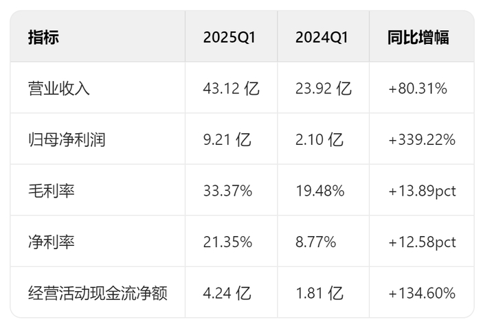 良率提升直接带动2025年一季度净利润环比增长122%,毛利率提升至33.37%。