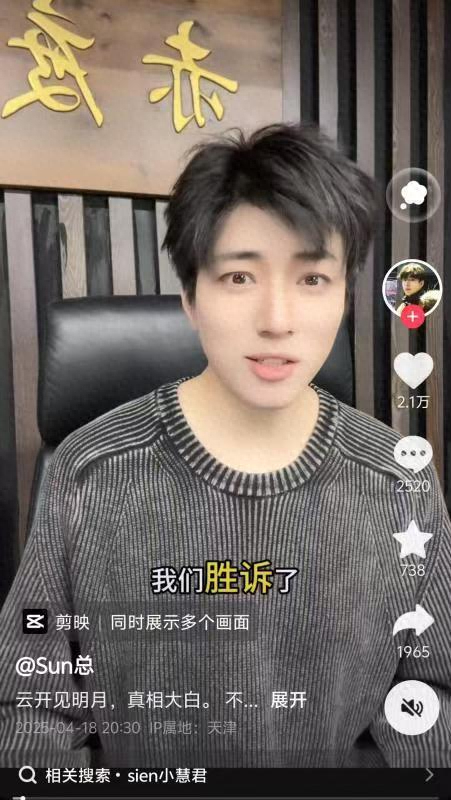 近日,被千万粉丝网红刘某慧(小慧君)造谣性骚扰的男老板孙灏羽发视频称胜诉了,并通告最新维权结果: