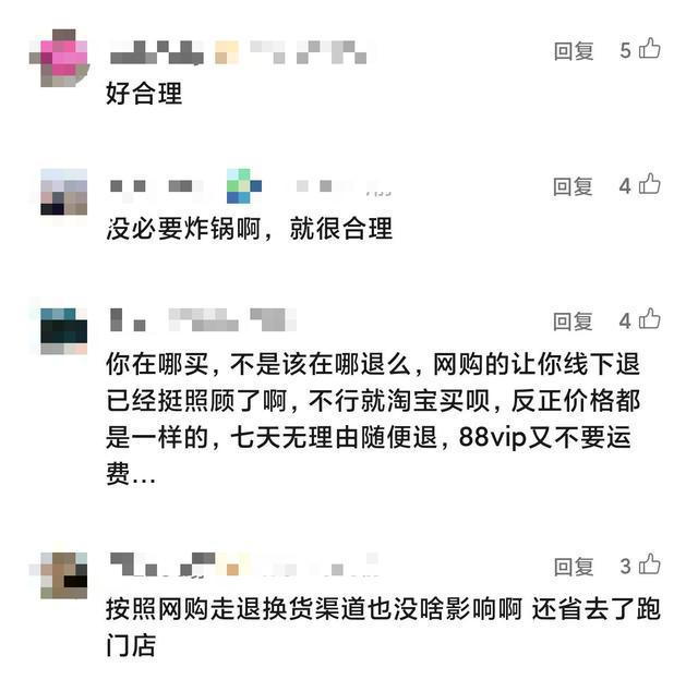 也有部分消费者表示支持和理解:哪里购买哪里退货本身也没毛病。